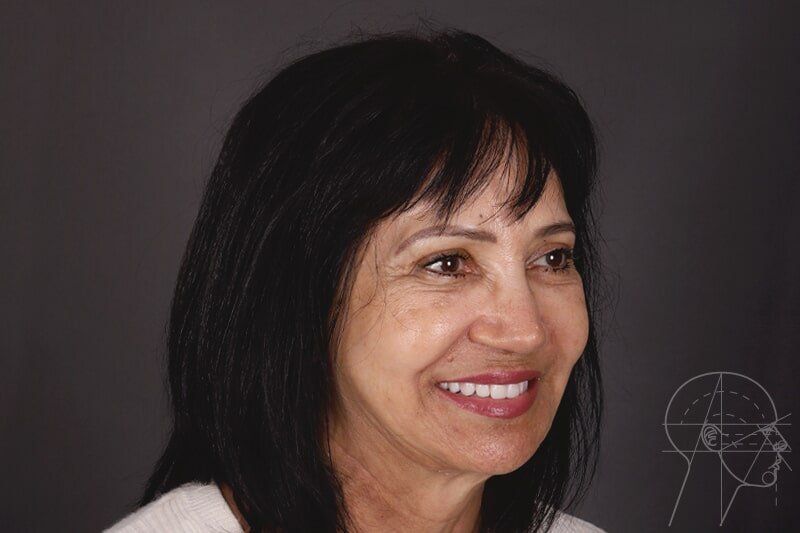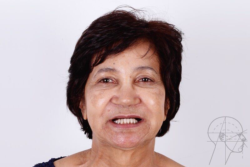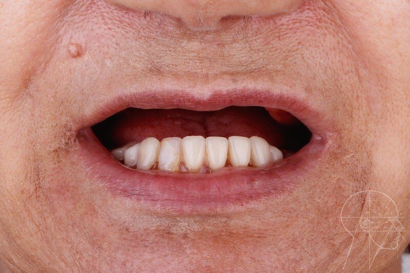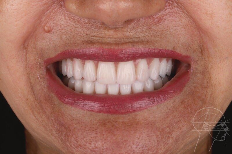 Foram colocados 2 implantes zigomáticos e 2 implantes convencionais na pré-maxila sob anestesia geral com prótese totalmente fixa aos implantes em menos de 24 horas.